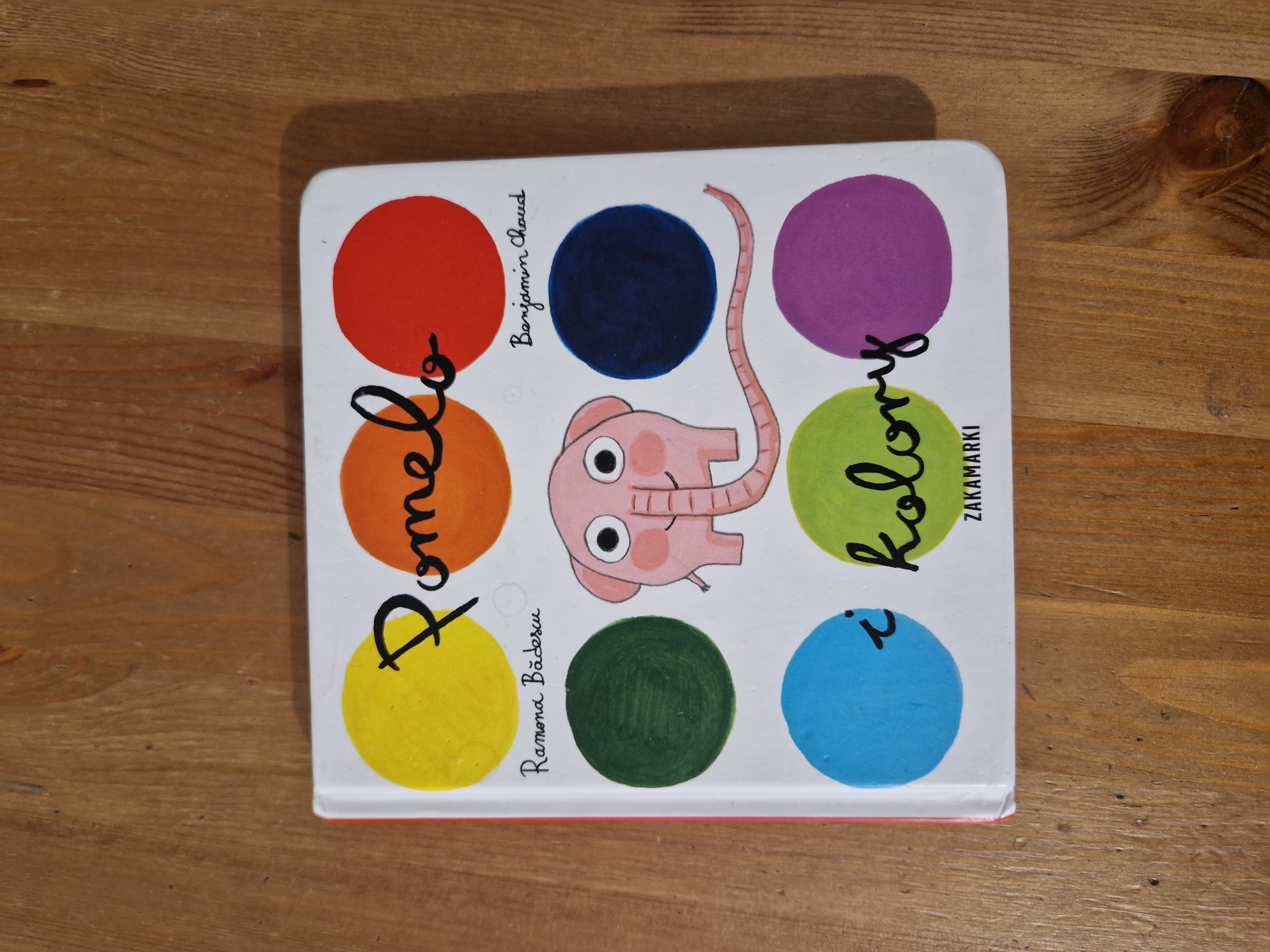 Jeśli szukacie najbardziej uroczego i rozczulającego słonika w literaturze dziecięcej to mam dla was jedynego możliwego kandydata - Pomelo. Jego imię, odpowiadające największemu cytrusowi wskazywałoby na znaczne rozmiary bohatera jednakże de facto jest on malutki i śpi w ogrodzie pod dmuchawcem. Na rynku dostępnych jest kilka książek zawierających opowiadania z Pomelo ale są też pozycje niebanalne - "Pomelo i kolory", "Pomelo i przeciwieństwa" oraz "Pomelo i kształty" - to zupełnie inna forma książki. W sposób łatwy , przyjemny i zabawny ukazuje dzieciom zależności między różnymi przeciwieństwami, kolorami czy kształtami. W naszej biblioteczce miejsce znalazła pierwsa wymieniona mianowicie "Pomelo i kolory".