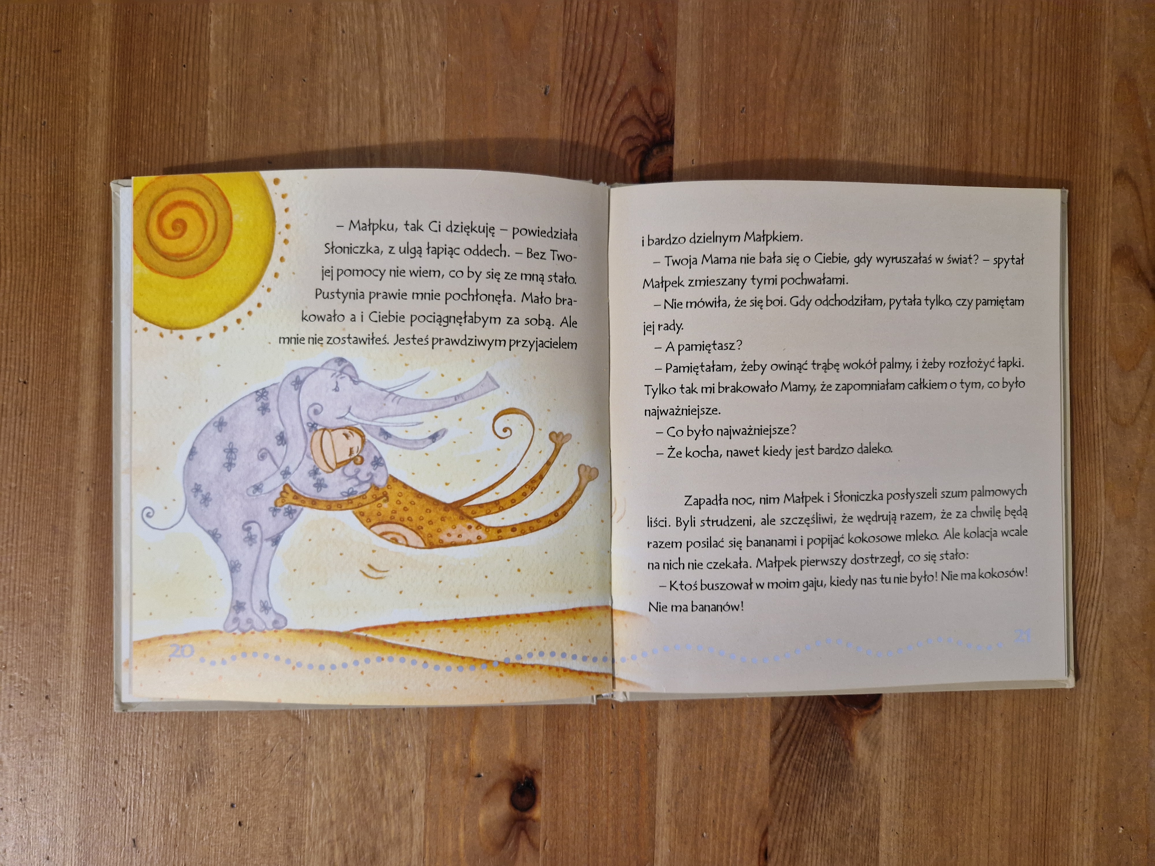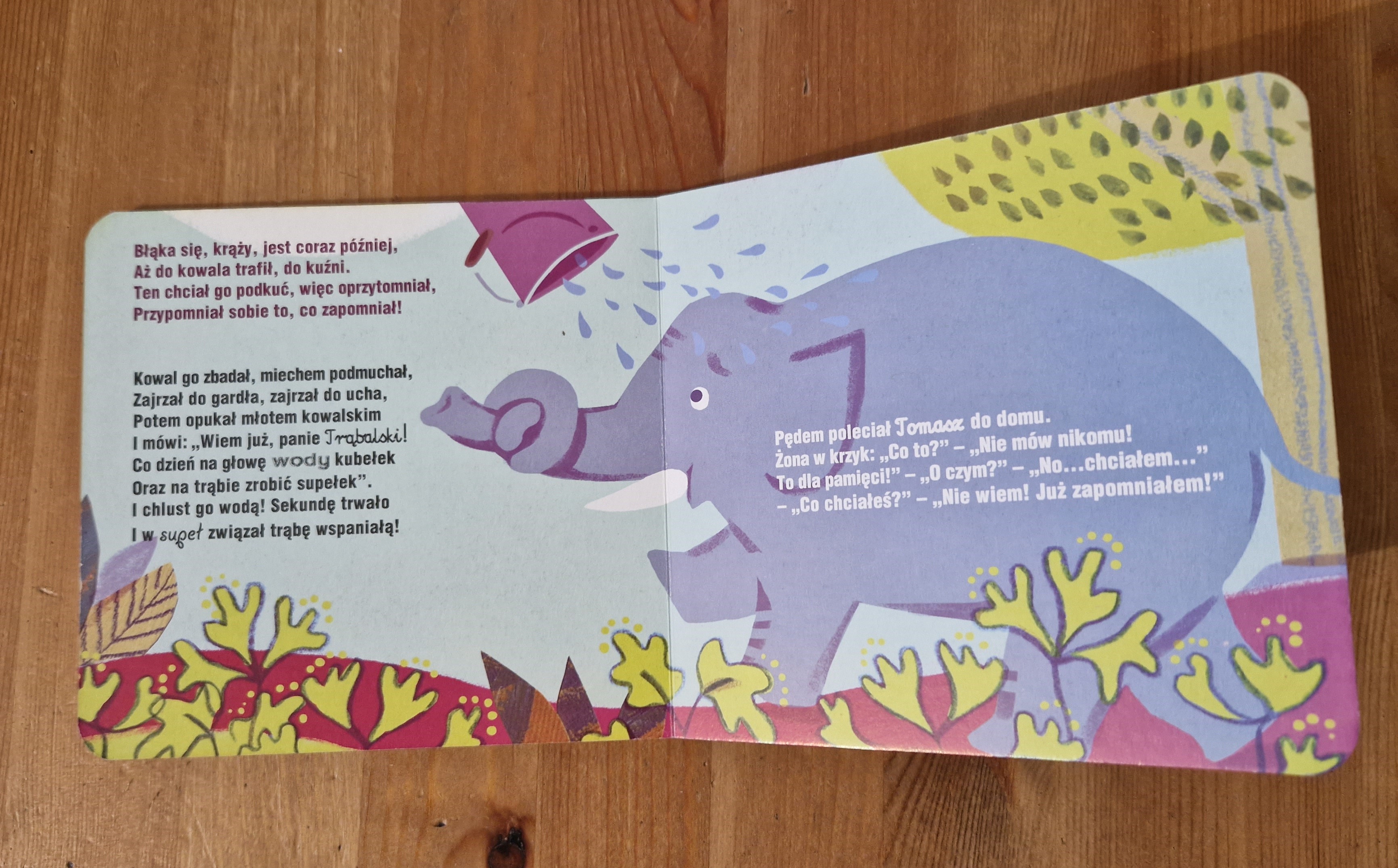 Oto kolejna pozycja nie będąca nowością na rynku literatury dziecięcej. "Proszę słonia" to książka pierwszy raz wydana w 1964r. W 1968 r powstał 7 odcinkowy serial animowany, a w 1978r film animowany na podstawie książki. Do nas trafiła wersja pięknie wydana nakładem naszego ukochanego Wydawnictwa Dwie Siostry.