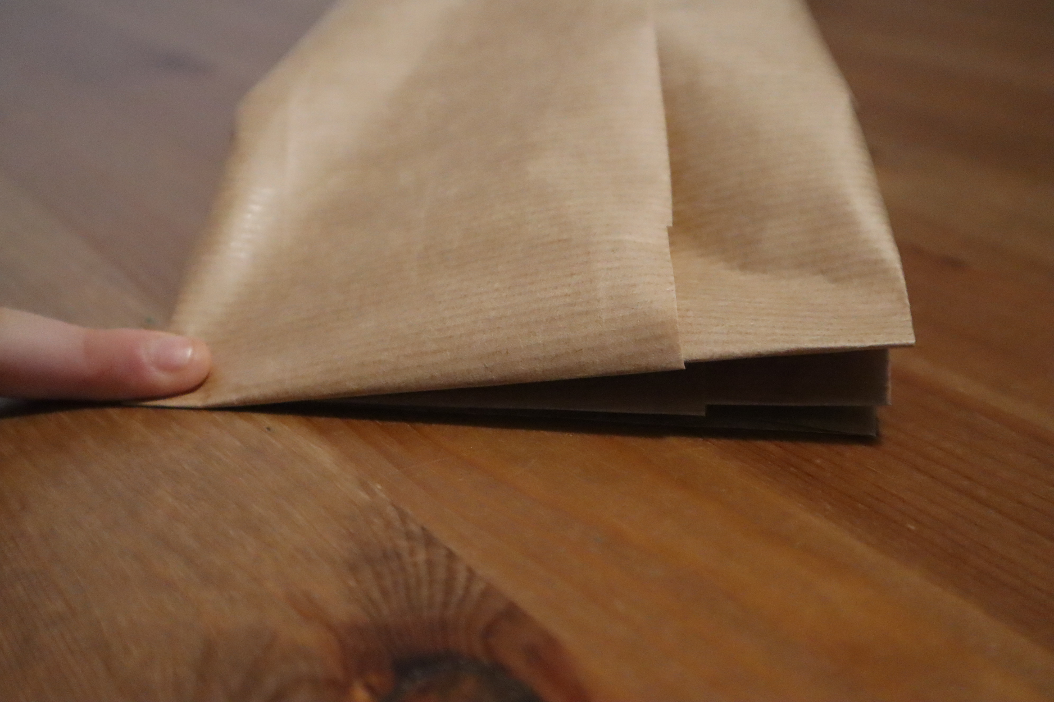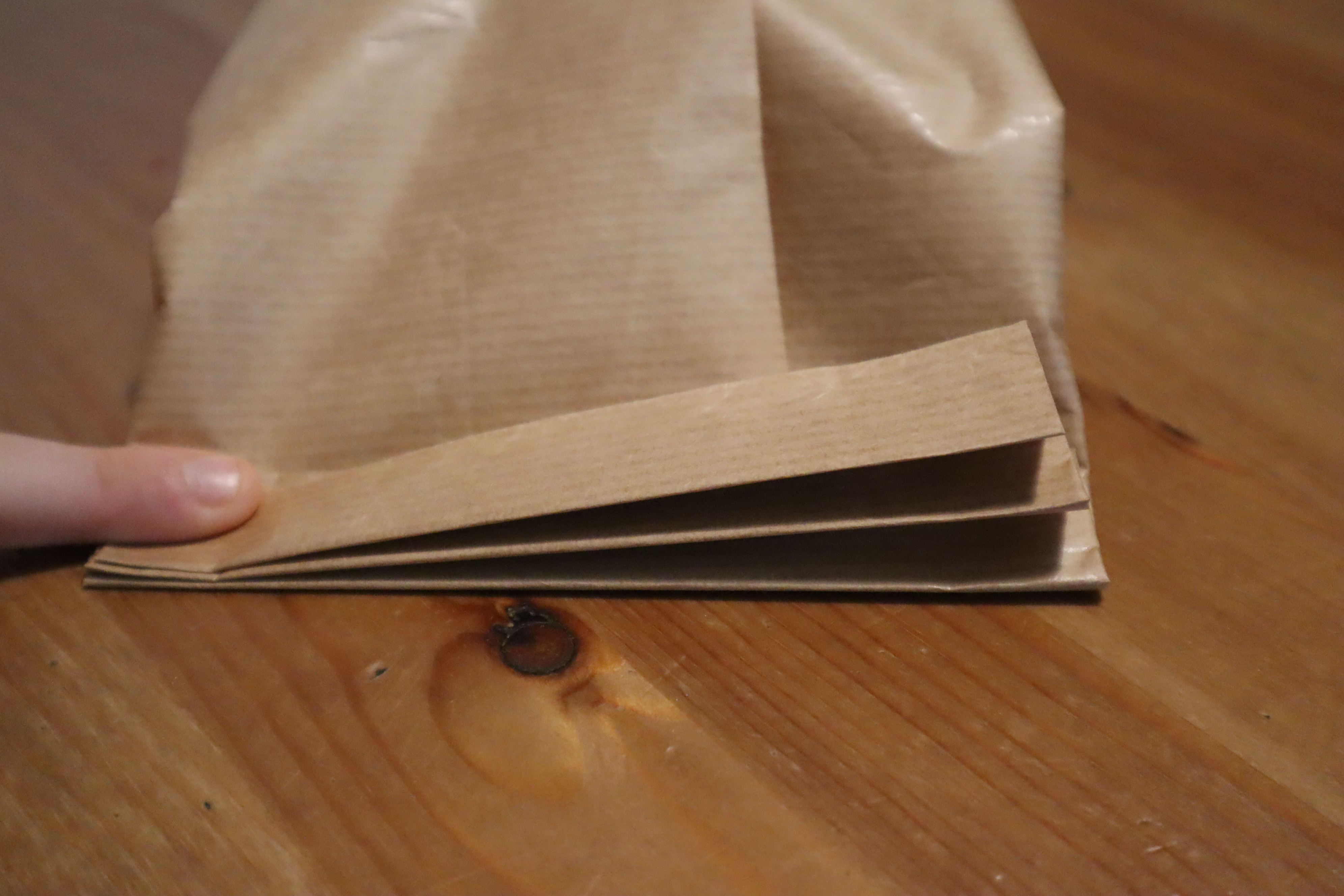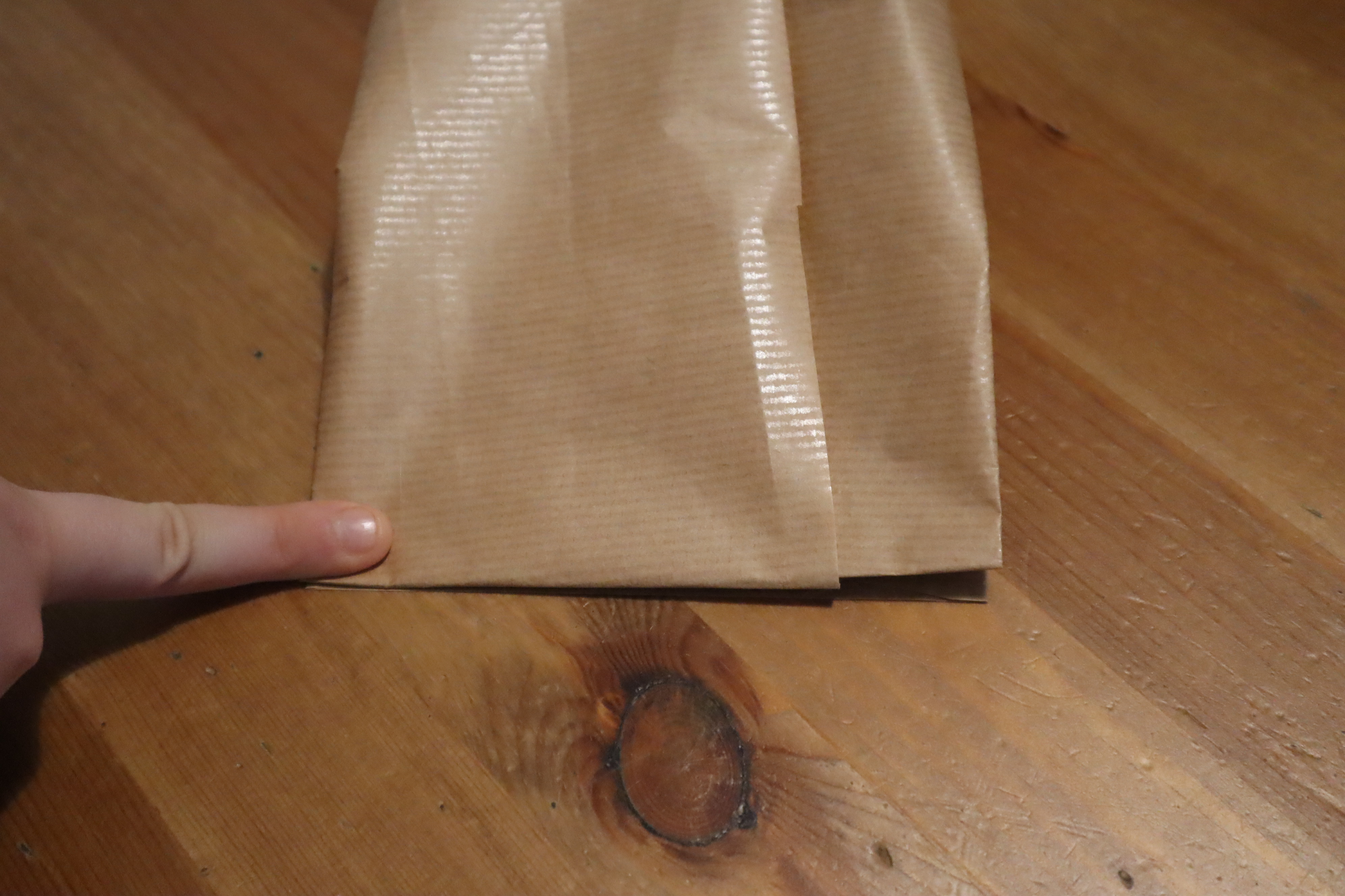 Krok 3 - papiery do pakowania są zwykle dość cienkie dlatego wielokrotne powielanie kolejnych czynności powoduje mocne pogniecenie papieru - lepiej najpierw potrenować na jakimś zbędnym kawałku - ta metoda wymaga lekkiego treningu.