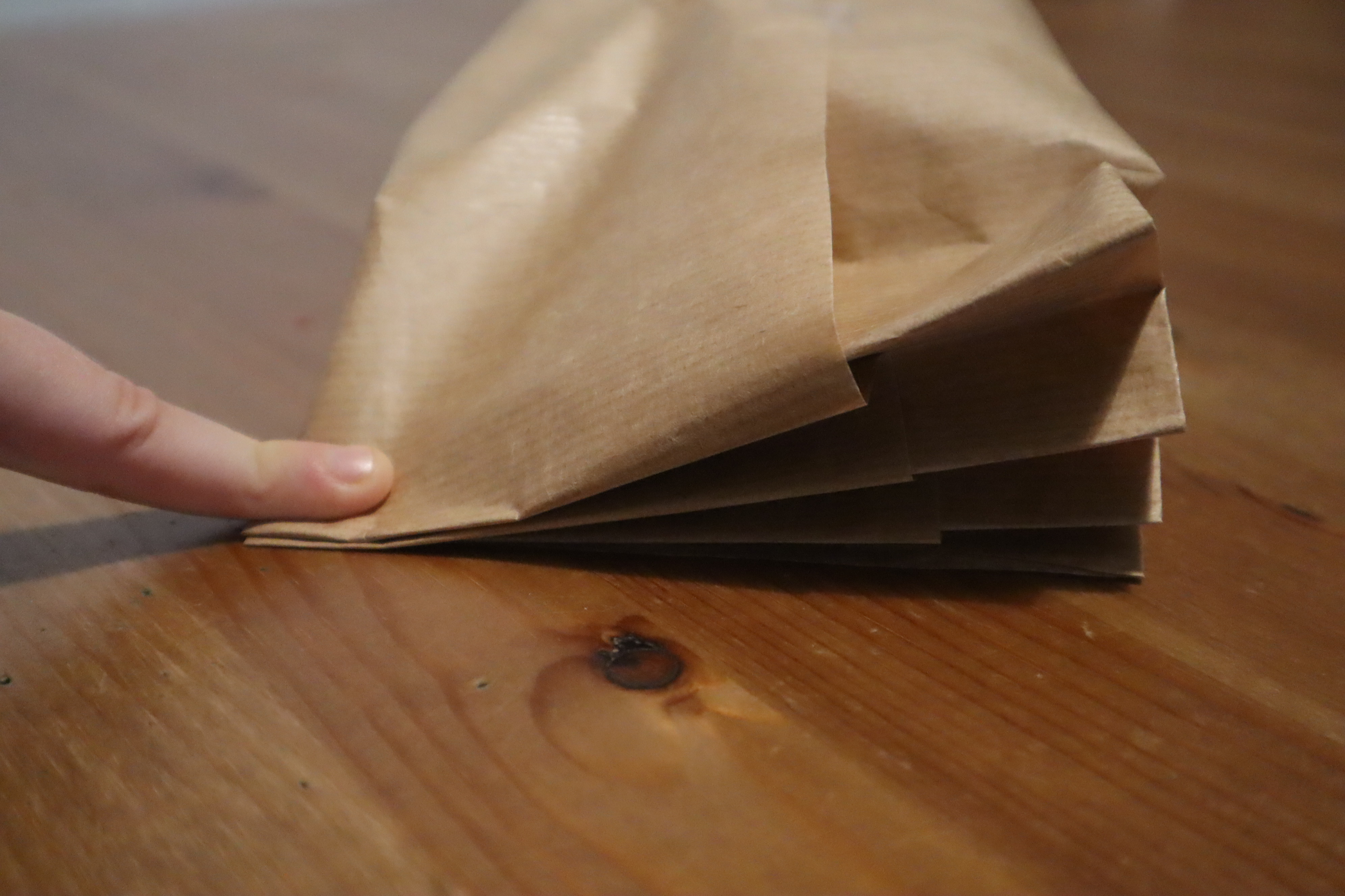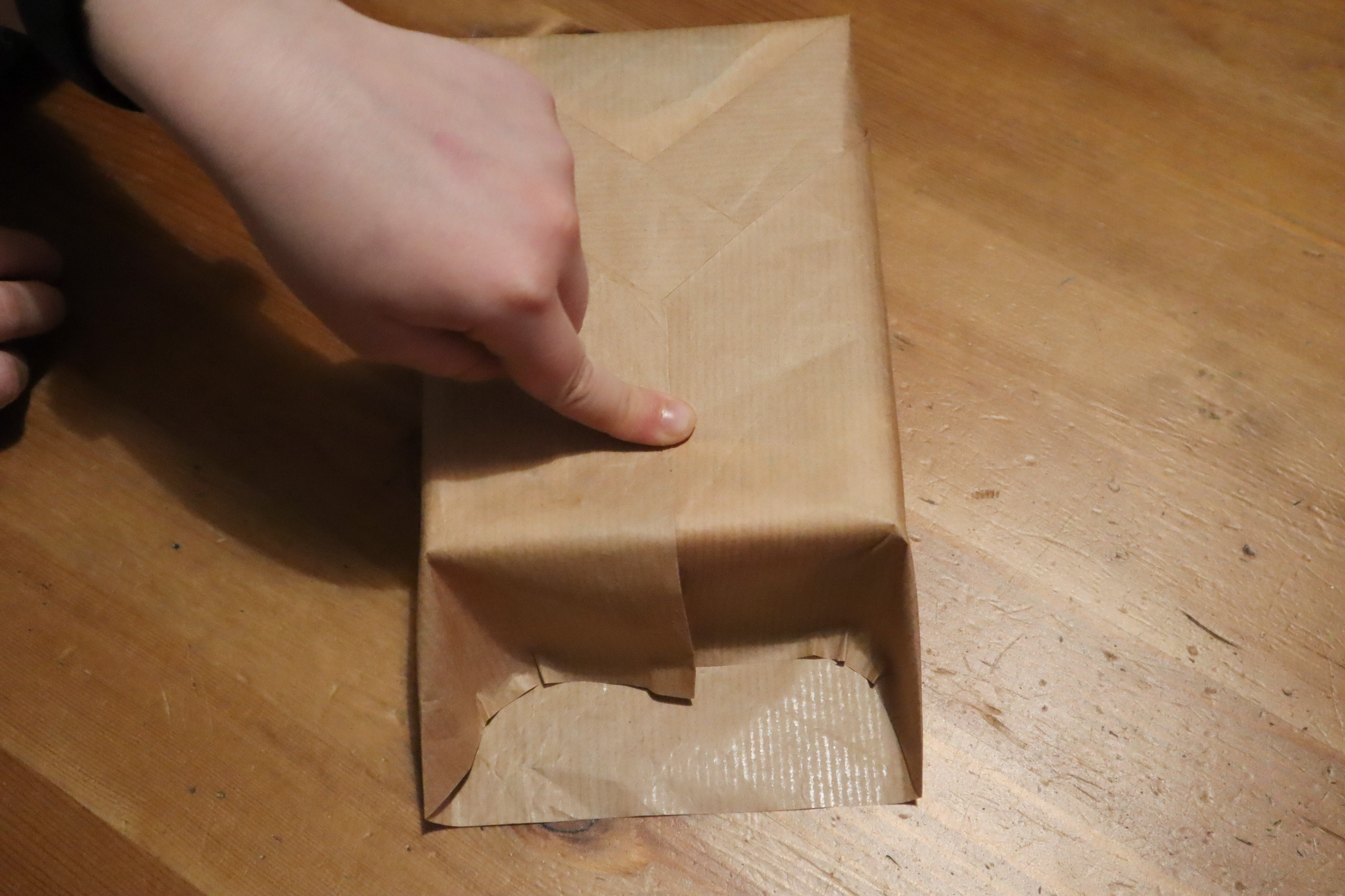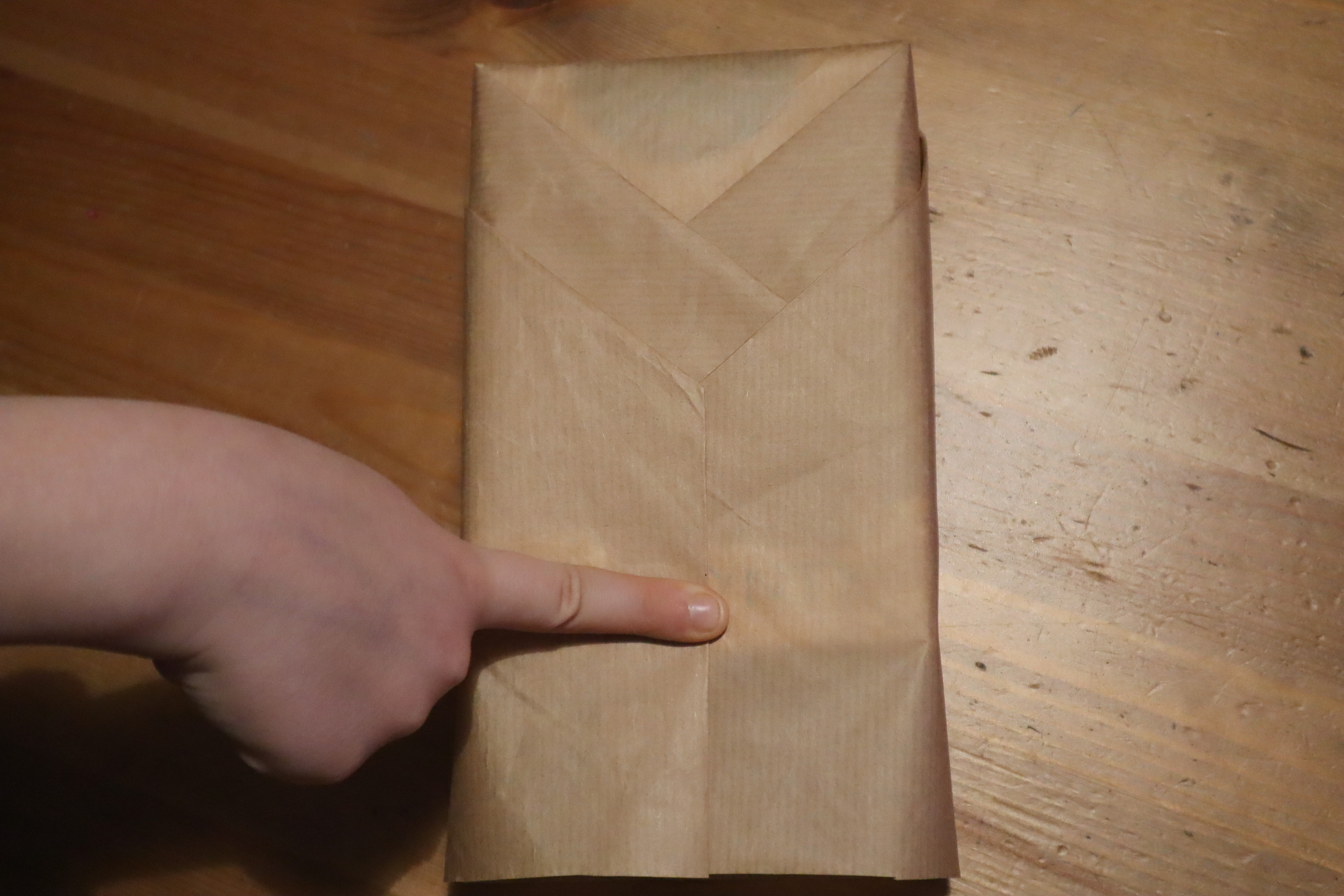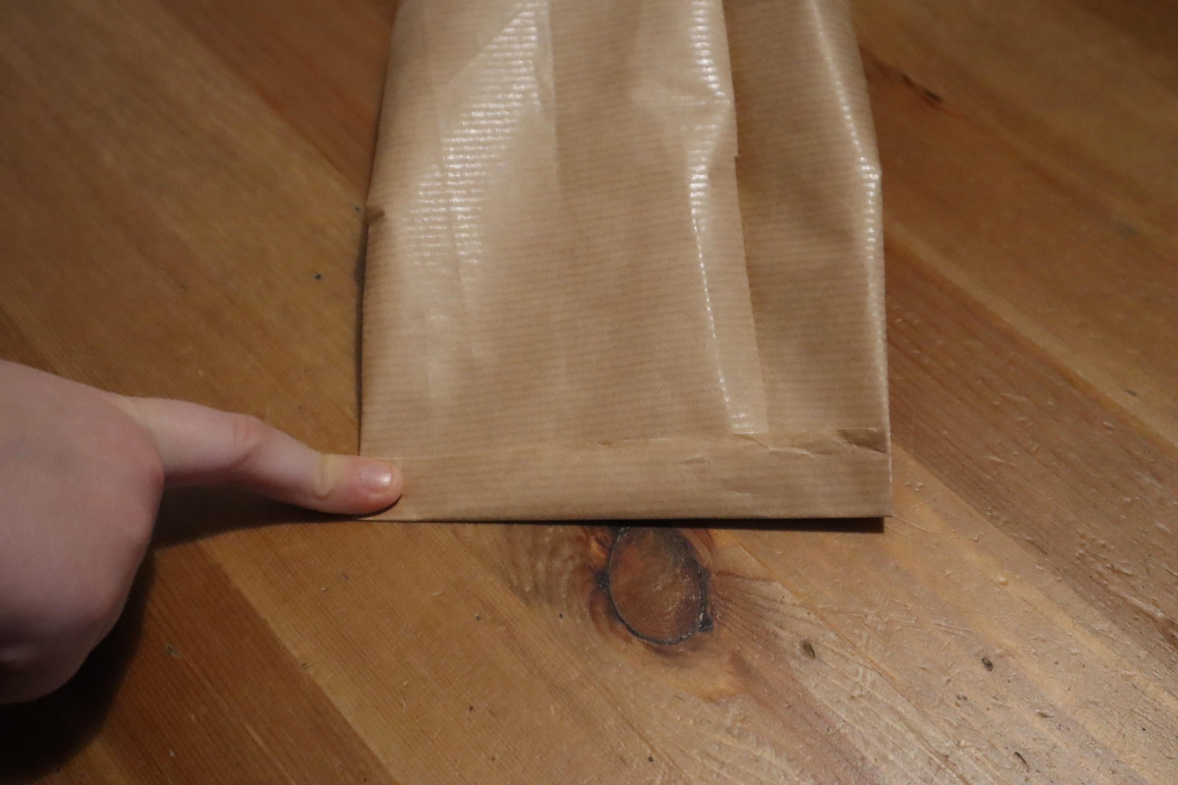 Krok 3 - papiery do pakowania są zwykle dość cienkie dlatego wielokrotne powielanie kolejnych czynności powoduje mocne pogniecenie papieru - lepiej najpierw potrenować na jakimś zbędnym kawałku - ta metoda wymaga lekkiego treningu.