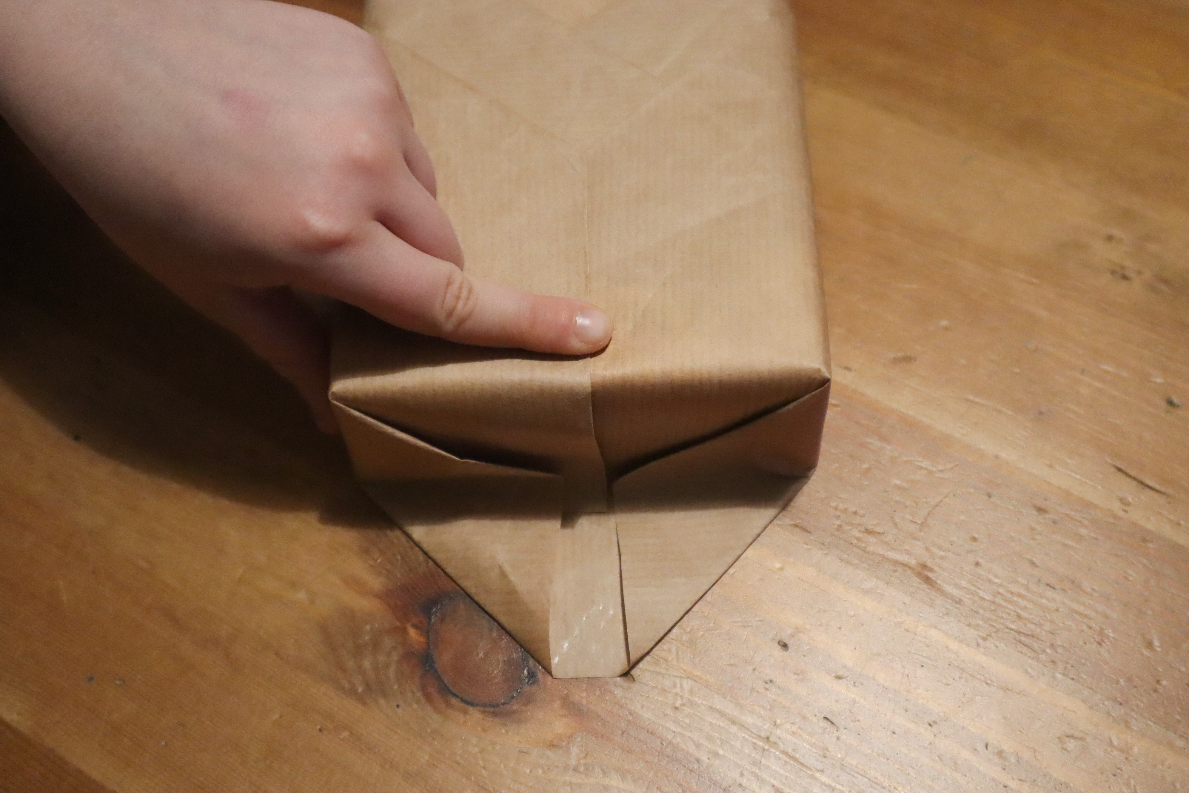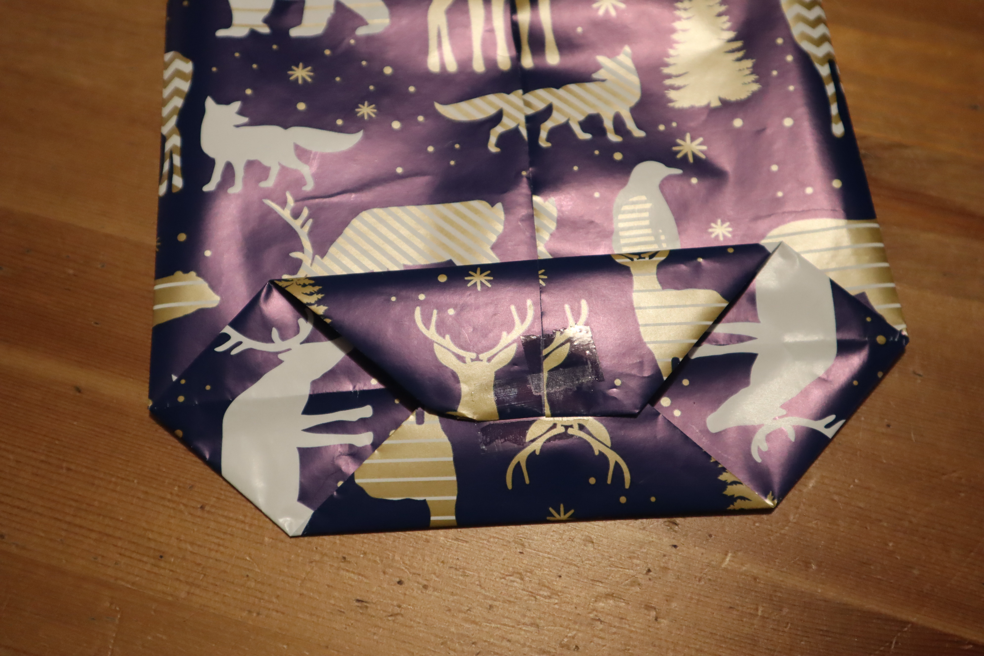 A rozwiązanie jest prostsze niż Wam się wydaje. Jeżeli tylko prezent położony lekko na skos na środku papieru po zagięciu jednego z rogów do środka będzie miał wszystkie swoje rogi zasłonięte - uda się.