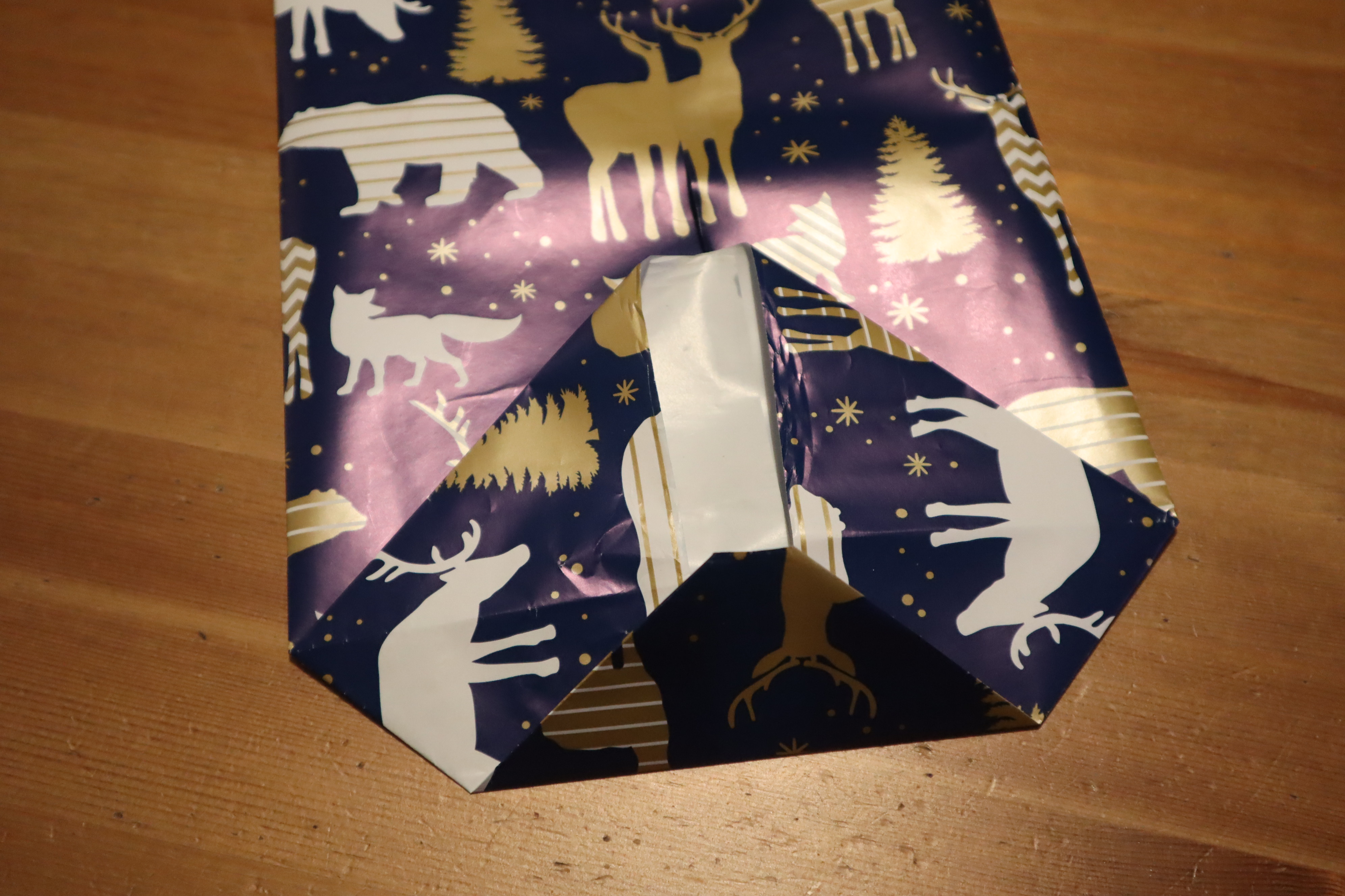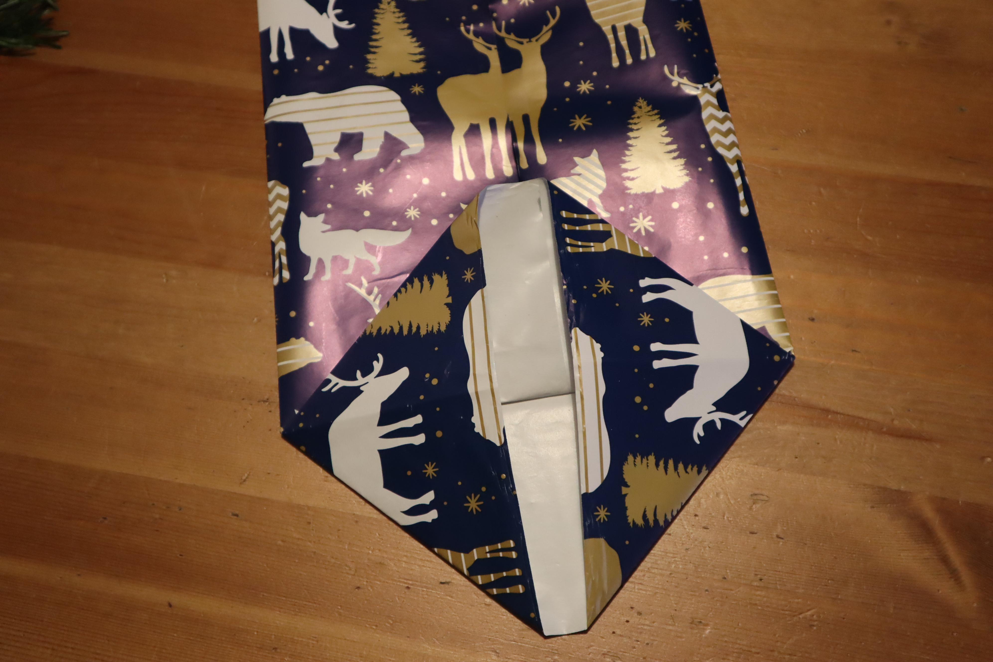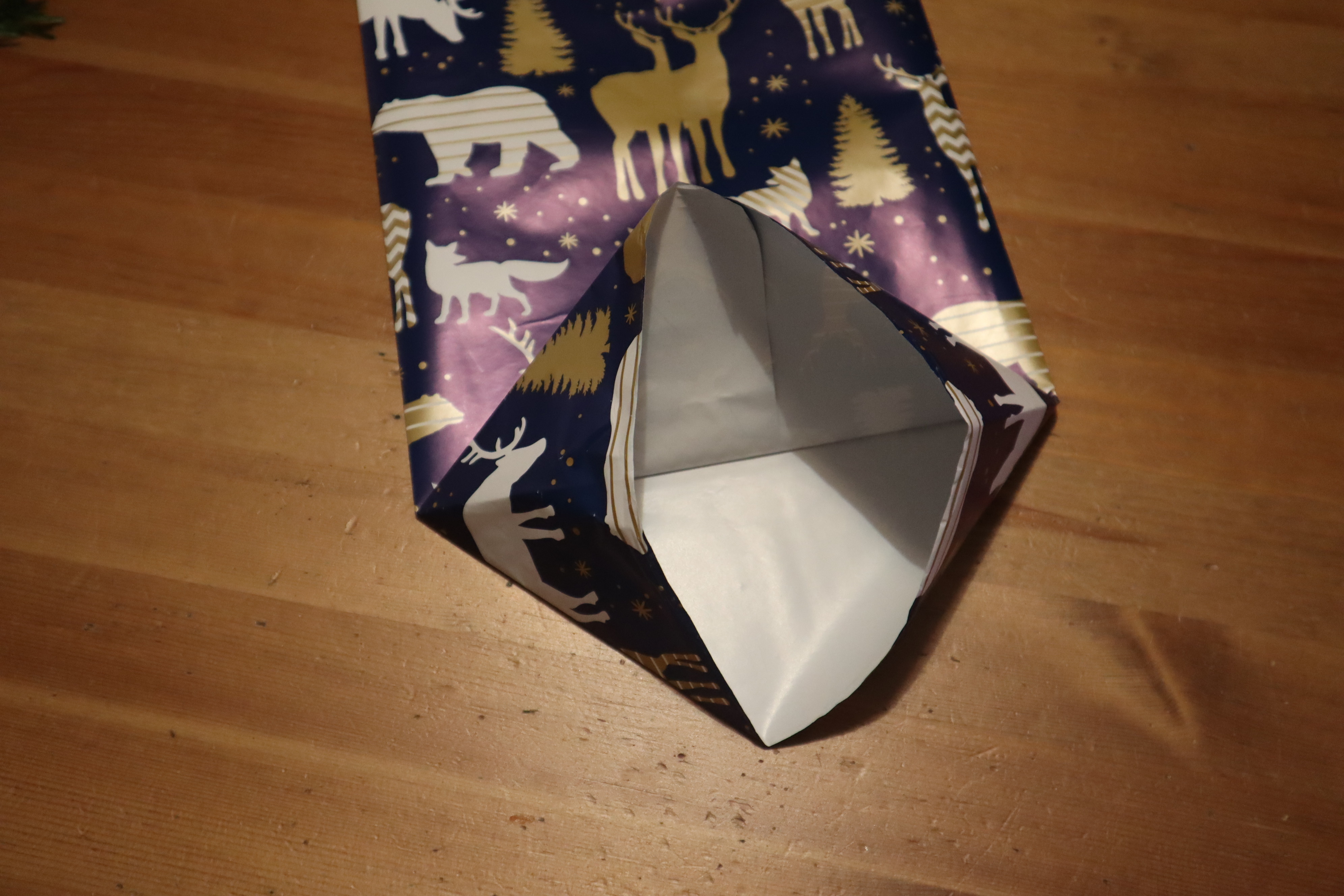 Krok 1 - Kawałek papieru musi zakrywać wszystkie rogi prezentu