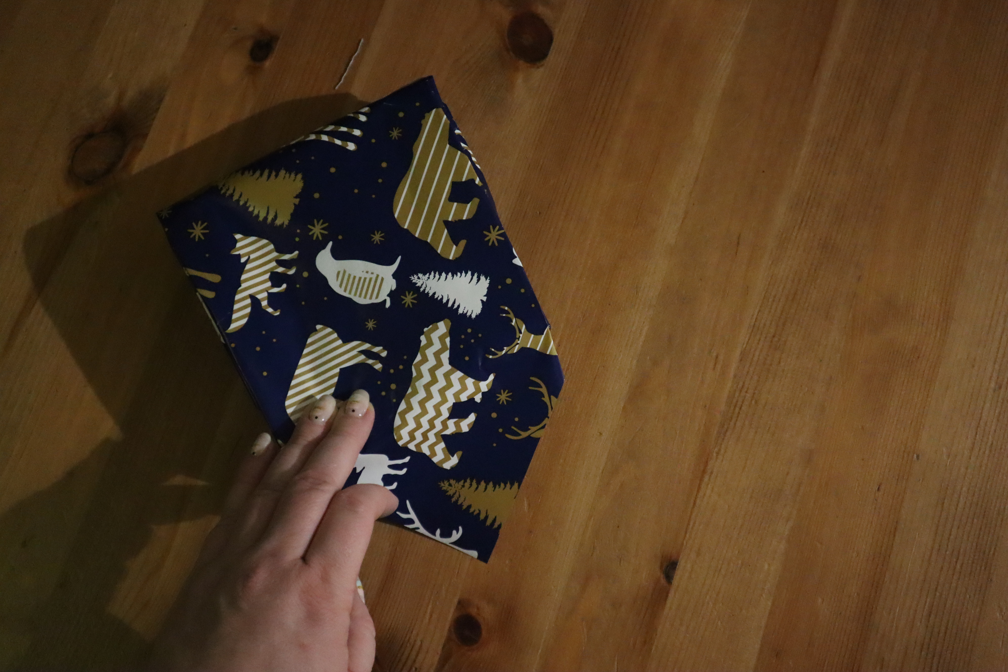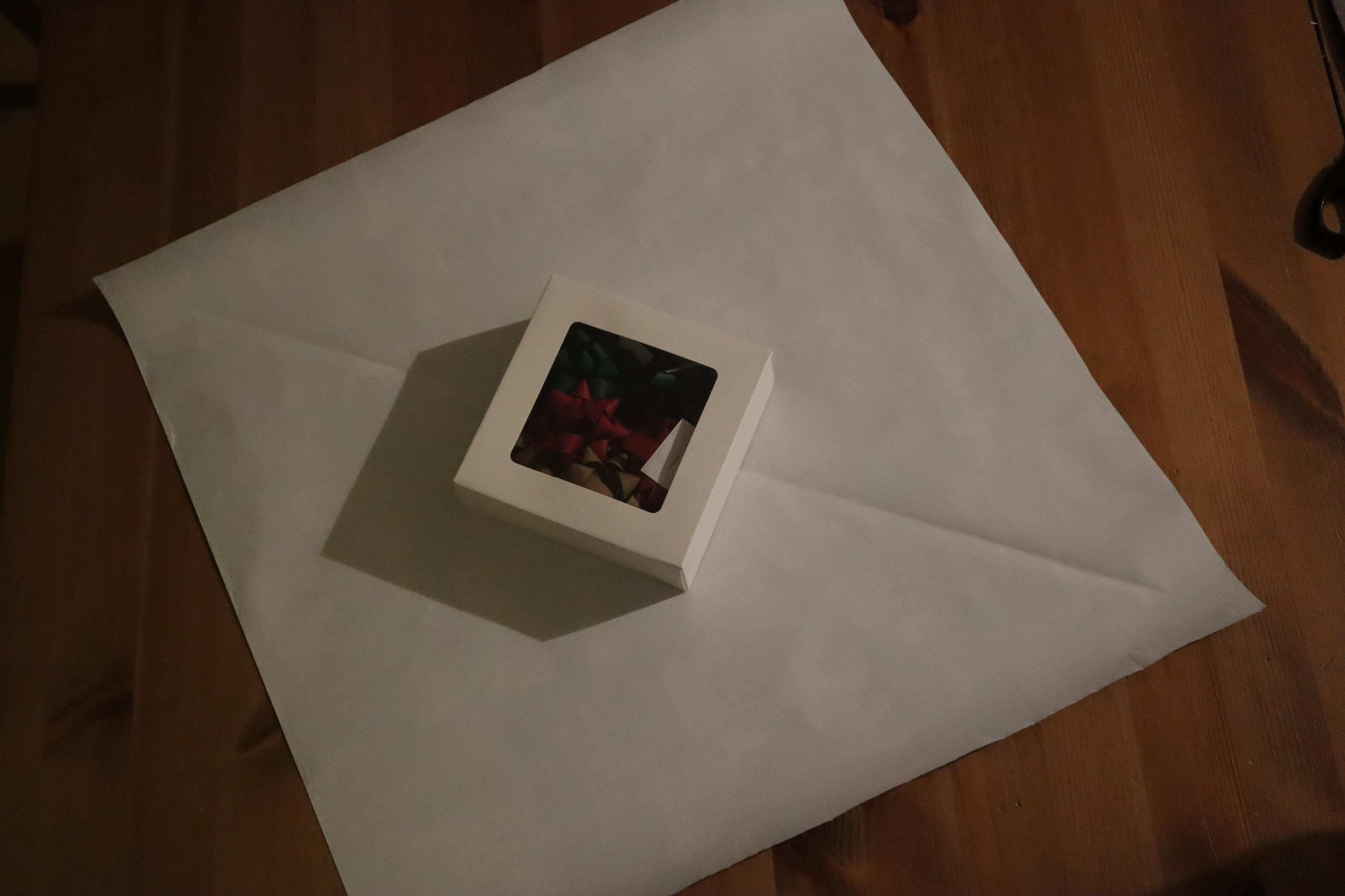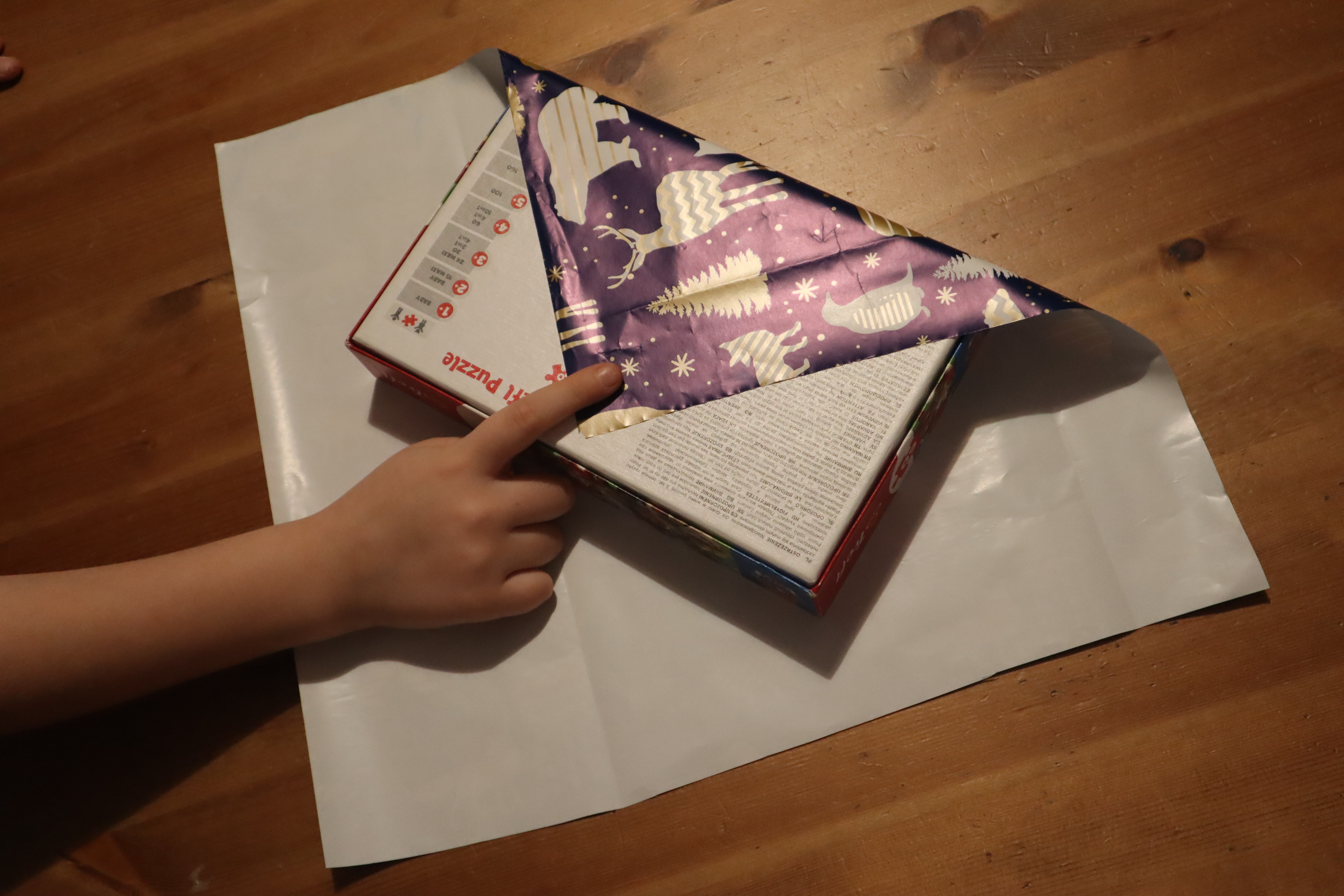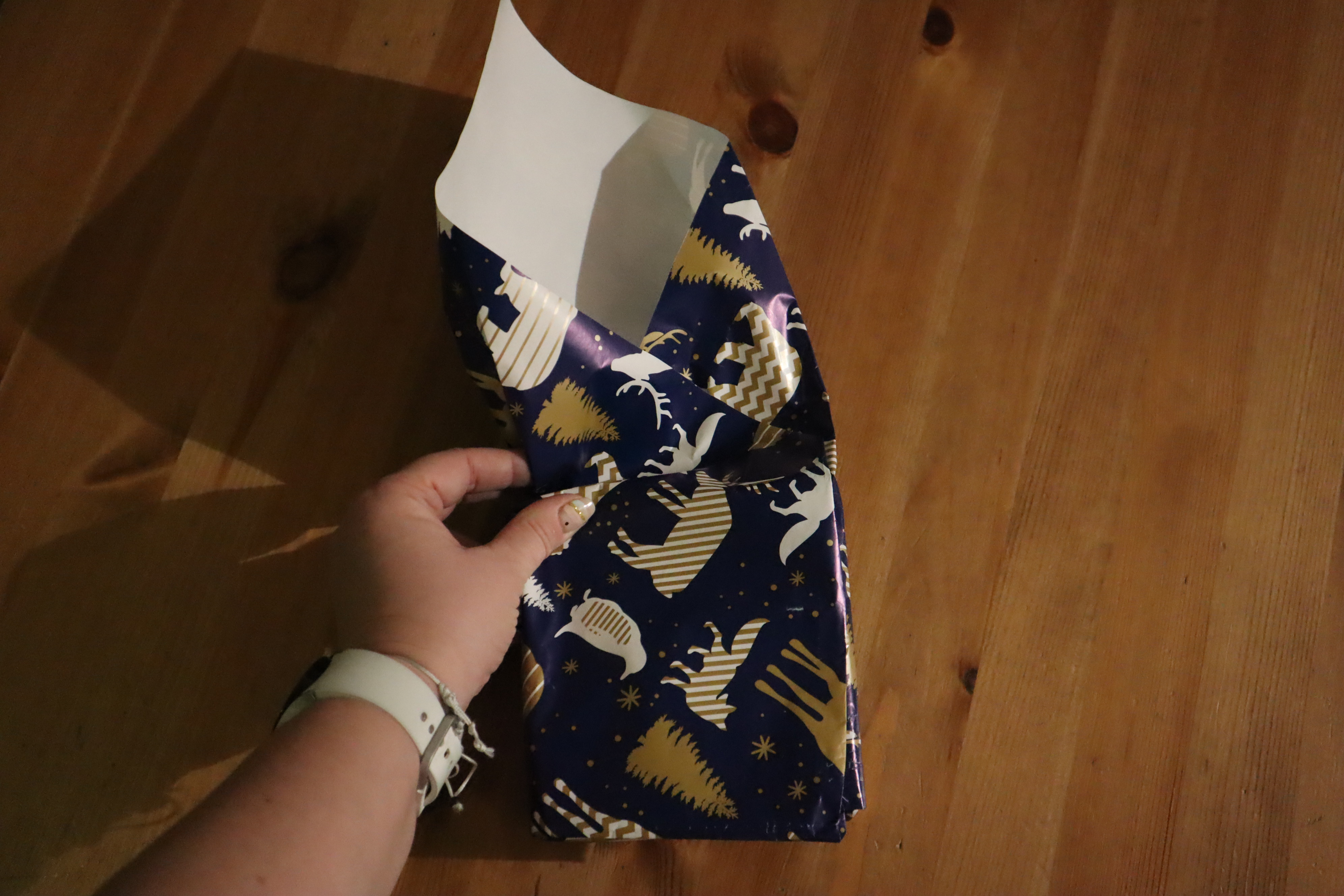Krok 2 - układamy prezent na środku i po kolei postępujecie zgodnie z czynnościami pokazanymi na kolejnych zdjęciach.