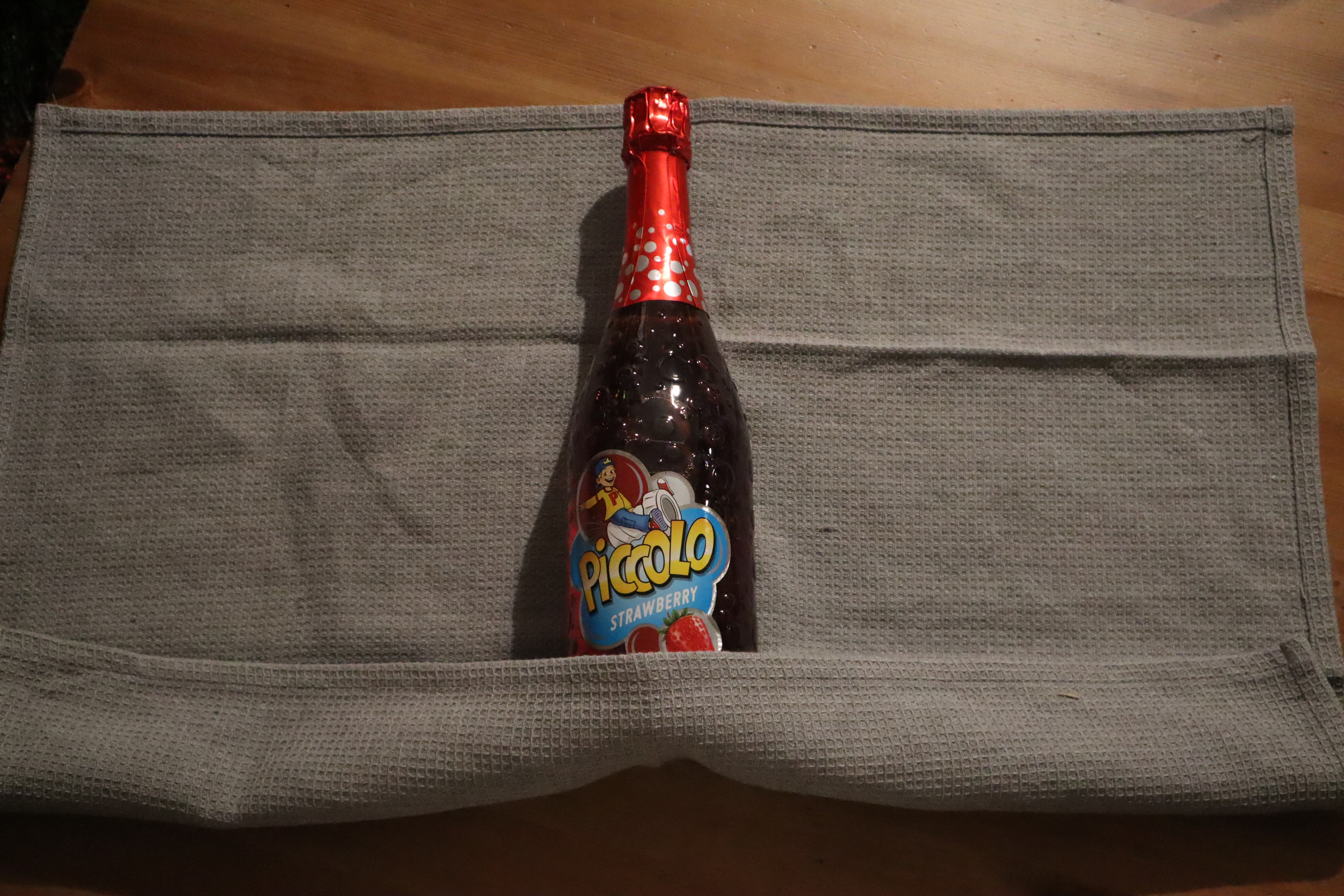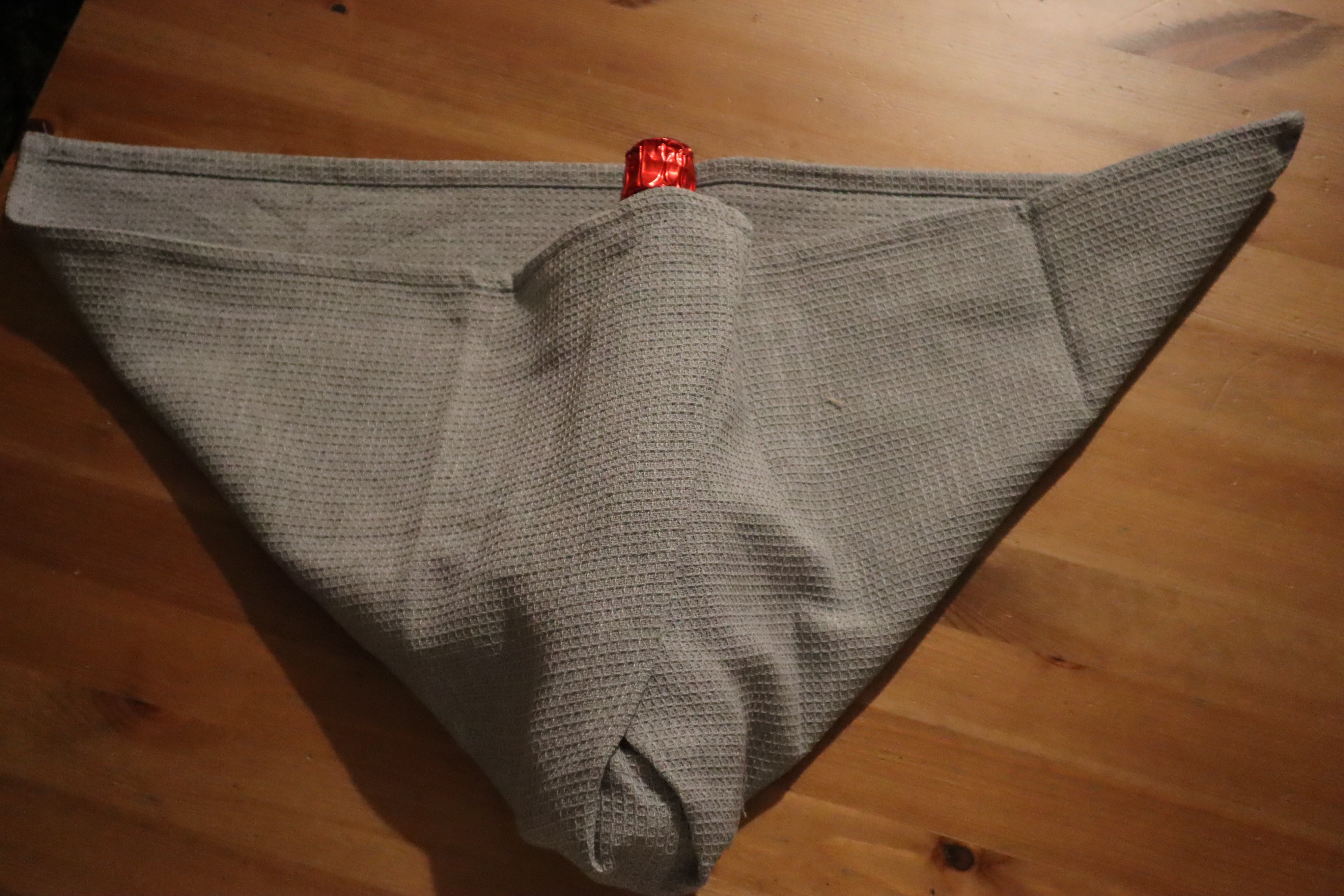 Krok 1 - nic nie tniemy tylko wyciągamy z szafy (najlepiej nową :P) ścierkę kuchenną i układamy na niej butelkę - jeżeli butelka mieści się na ścierce mimo zakrycia denka - będzie idealnie.