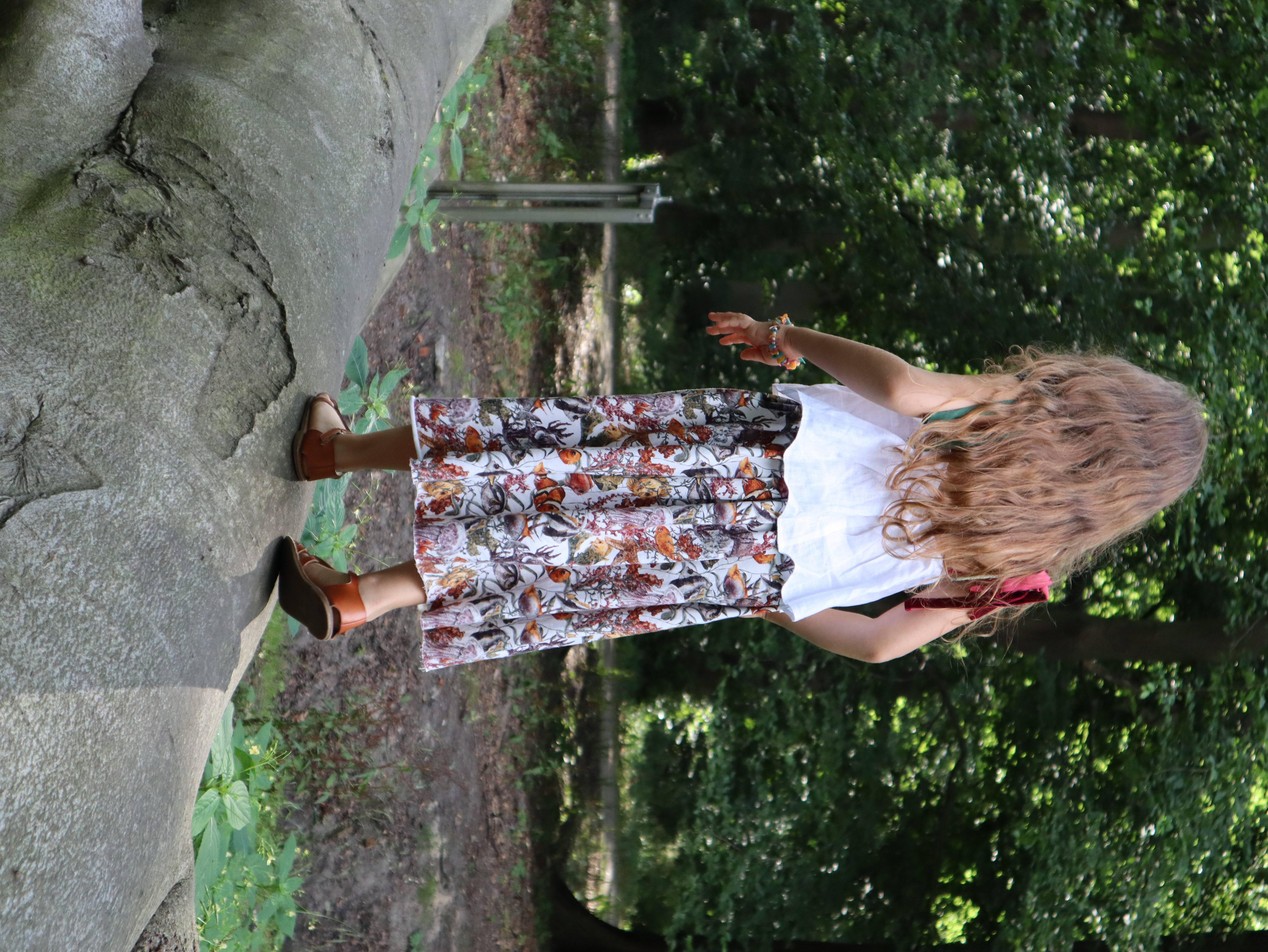 Decydując się na długość 7/8 wyszłyśmy naprzeciw oczekiwaniom mam obawiających się ,że długość maxi będzie niewygodna i może powodować potknięcia lub zaplątanie się w spódniczkę - nic bardziej mylnego, nasze córki przetestowały wszystkie modele w naprawdę skrajnych warunkach - od jazdy na hulajnodze po wspinanie się na drzewa - żadnych potknięć, zaplątań w tkaninę nie odnotowano :).